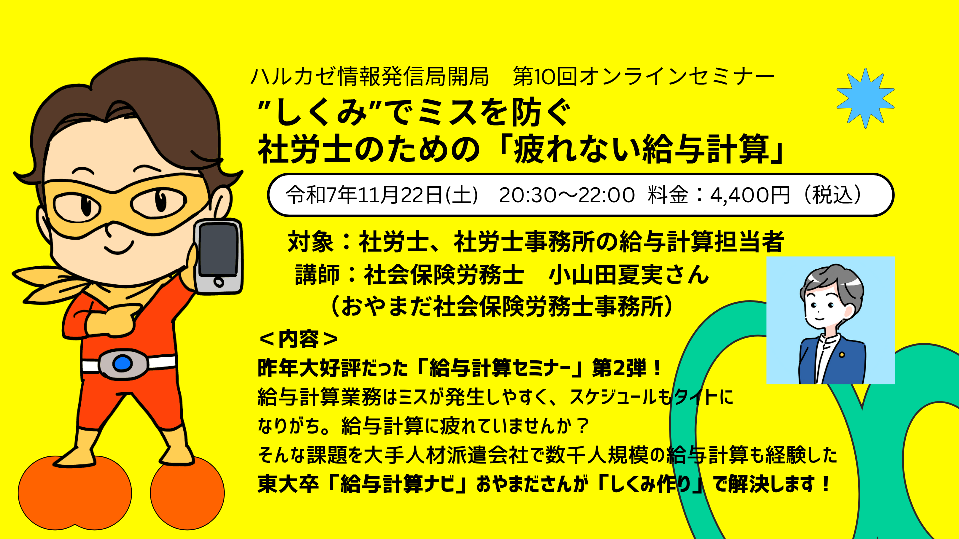 - 講師:小山田夏実さん(おやまだ社会保険労務士事務所)